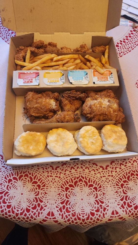 Have a meal perfect for friends and family! This 16-piece combo includes our world famous chicken - 4 drums, 4 thighs, 4 breasts and 4 wings - in the KFC recipe of your choice, 4 large sides and 8 buttery biscuits. Order for delivery or pick up at a KFC near you. (4600-9600 cal.)